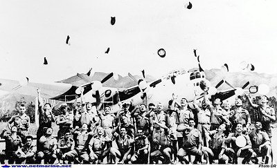 1952-1958 : patrouille maritime sur Lancaster Le mardi 22 janvier 1952, au petit matin, le capitaine de corvette Mellet fit décoller un Lancaster « bleu royal» de Saint Eval en Grande Bretagne pour rejoindre Port-Lyautey. Les 1 800 km furent effectués en 5 h 45 à pleine charge (15 hommes plus des bagages et de nombreux rechanges). Ce fut le premier Lancaster de l'Aéronautique Navale à toucher le sol marocain.