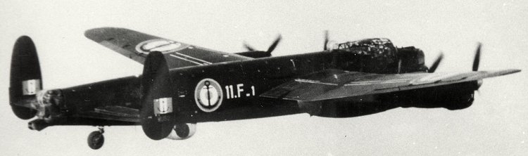 1952 : Création de la flottille 11F Le premier août 1952 est créé à Lartigue (Oran) la 11ème flottille ASM, qui reprend l'insigne de l'escadrille 2B (la tête de Gazelle). Le capitaine de corvette Goullet de Rugy prend le commandement de la 11F et de ses dix Lancaster, prélevés sur le parc de la 2F. Afin de s'initier aux secrets du nouvel appareil, le futur commandant, trois ses officiers et une équipe de mécaniciens avaient suivi un stage en juillet au sein de la 55S. Si les avions livrés à la flottille sont en état de vol et révisés à neuf, les équipements opérationnels, les rechanges, l'outillage, les effets de vol et de sécurité sont rares. Le 11F-3 ouvre les vols de la flottille le 2 août 1952 avec à son bord : le CC de Rugy, l'EV Chataud, l'IM2 Raison, le MT Boudigue et les SM Guilles et March. Mais le plan d'armement de la 11F est loin d'être complet et le manque d'effectif gêne la constitution d'équipages : l'entraînement de la jeune flottille se déroule sans accident majeur. Au cours du mois de novembre, les avions sont enfin équipés de leur radar APS-15 et du système d'écoute de bouées sonores, à Cuers.