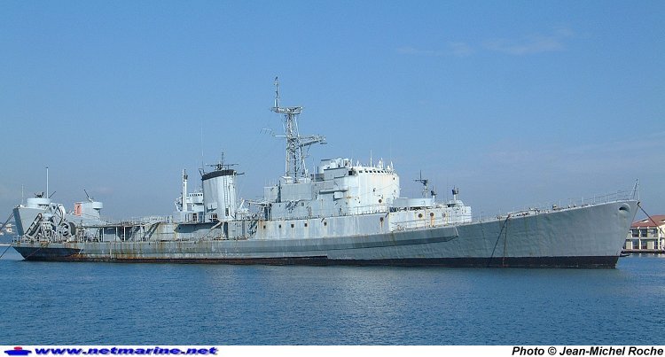 L'aviso-escorteur Commandant Rivière, alors réduit à l'état de coque, sert de brise-lames à Saint-Mandrier (6 mars 2002).