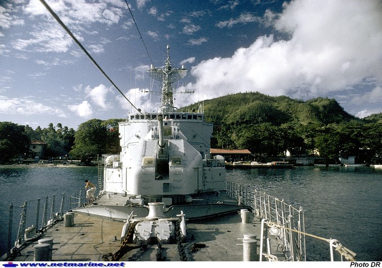 au mouillage devant Fare à Huahine (12 juillet 1972 - Photo Claude Kech).