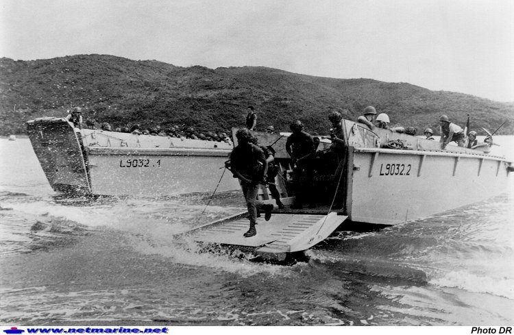 Débarquement d'une compagnie du RIMAP à partir des LCVP - Landing Craft Vehicule & Personnel - du Batral