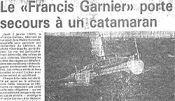 Alors que pour l'équipage du Batral, tout était prêt pour un Noël en famille des plus paisible, le 23 décembre au soir, l'officier de garde au P.C. Opérations de la Marine nationale à Fort-de-France entend un appel de détresse Mayday lancé par un chalutier surinamien Denmic 1. Une opération de sauvetage et d'assistance étalée sur 4 jours et 80 nautiques venait de débuter... Le 26 décembre au matin, le Francis Garnier, appareille. Après un premier contact visuel, un zodiac est mis à l'eau afin de permettre au lieutenant de vaisseau Laporte et aux second-maîtres Guyader et Woog de fixer une remorque fiable entre le Batral et le Denmic 1. Cette manoeuvre fut d'autant plus délicate que l'abordage était rendu difficile par une forte mer marquée par des creux de presque deux mètres. Les bâtiments arrivèrent à Fort-de-France à 23h30 et l'équipage du Denmic 1 est sain et sauf.