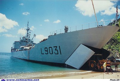 ![]() Le Batral Francis Garnier lors d'une mission à Sainte Lucie au profit du RSMA, Régiment du Service Militaire Adapté (novembre 1994) |