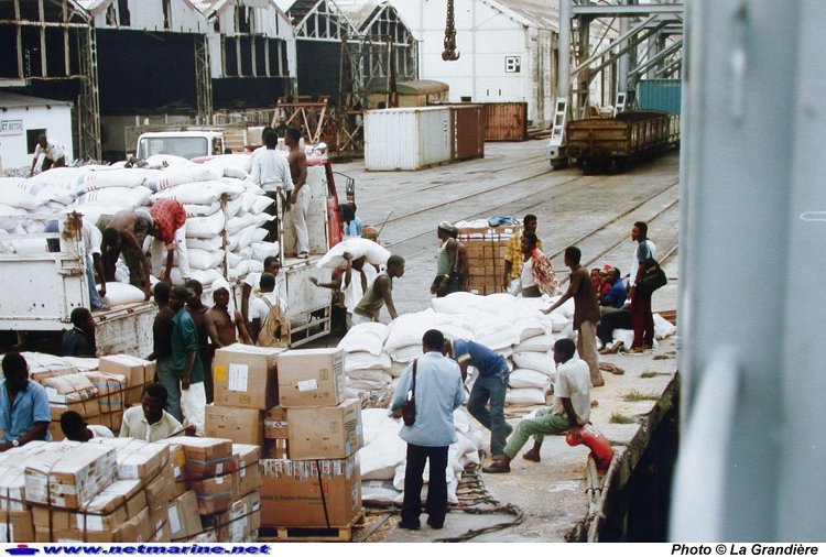 Le BATRAL La Grandière en escale, du 9 au 11 janvier 1990, à Maputo (Mozambique), y embarque une cargaison d'aide humanitaire (120 tonnes de mais, 7 tonnes de médicaments et 5 de vêtements), qu'il transporte jusqu'à Moma (14 au 15 janvier), un petit port de la côte Nord Est du Mozambique à la lattitude de Juan de Nova.