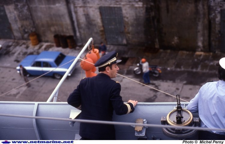 , à la manoeuvre à l'arrivée à Punta Delgada (Sao Miguel) aux Açores (7 janvier 1980).