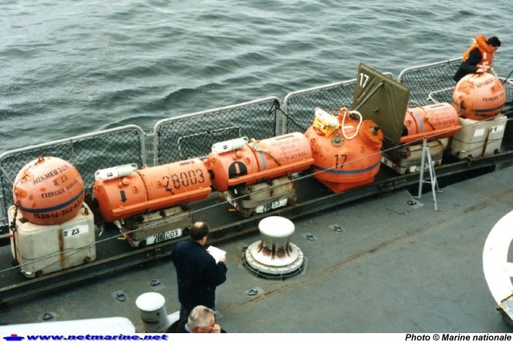 Les mines sont parées à être larguées à la mer depuis le Bātiment de Soutien Mobile (BSM)