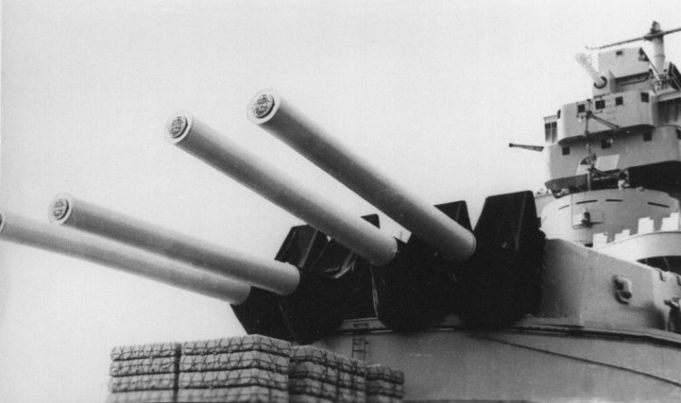 Les tourelles quadruples de 380 mm du Jean Bart, le plus gros calibre jamais porté par un bâtiment français.