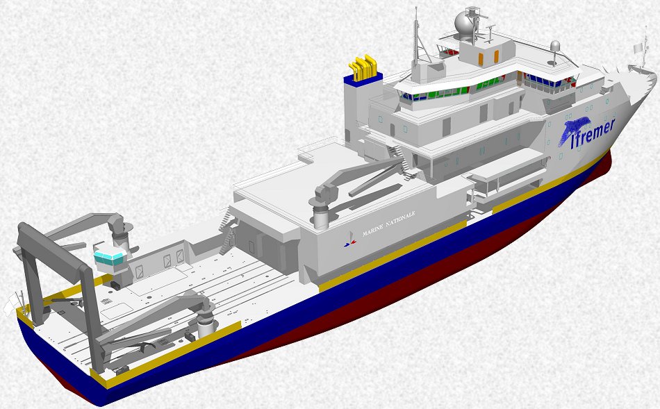 • Treuil océanographique permettant le carottage, le dragage, la traction d'engins remorqués, le déploiement au fond d'engins lourds. Les limitations de charges dépendent du type de câble utilisé.