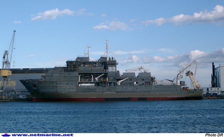 Le navire d'exploration profonde Pourquoi Pas ? en achèvement dans le bassin de Penhoët aux chantiers de l'Atlantique à Saint Nazaire (20 octobre 2004 - Photo Jean-Paul Thomas).