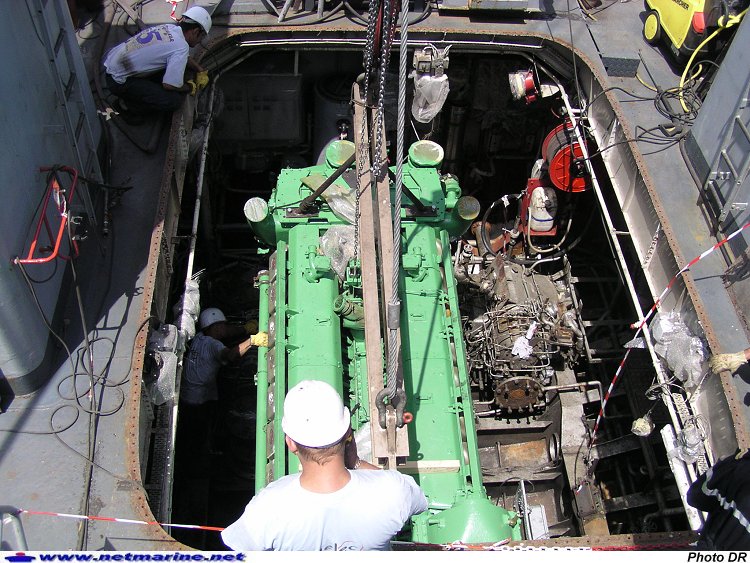 Embarquement des moteurs de propulsion à bord du patrouilleur