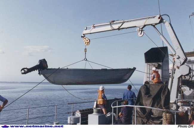 1990 : Mise à l'eau de la balénière depuis le patrouilleur