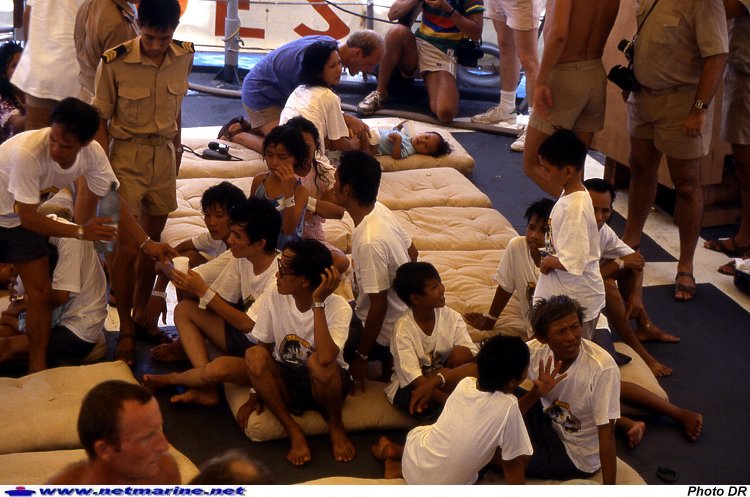 En mai 1987, le patrouilleur La Moqueuse effectue le sauvetage de boat-people en mer de Chine, en recueillant 354 personnes (Photo Didier Lévêque).