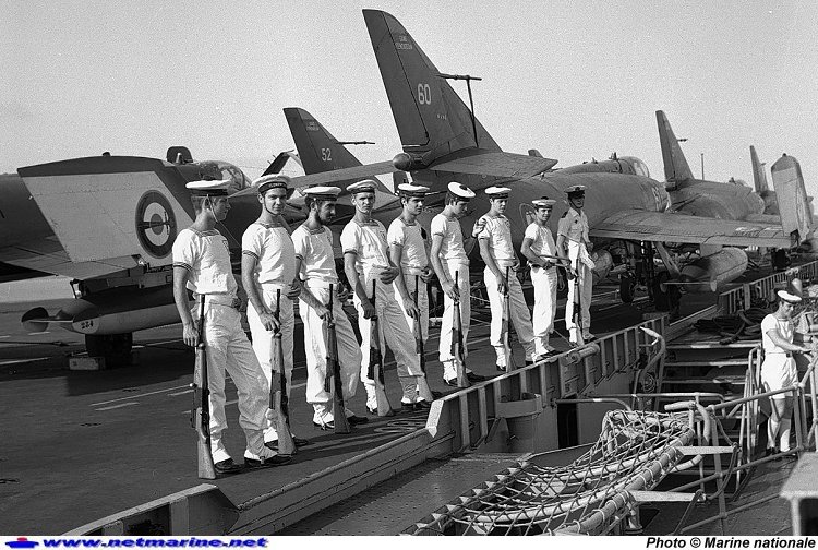 De longs moments au soleil pour la garde d'honneur du porte-avions Clemenceau à son arrivée à Djibouti (15 novembre 1974).