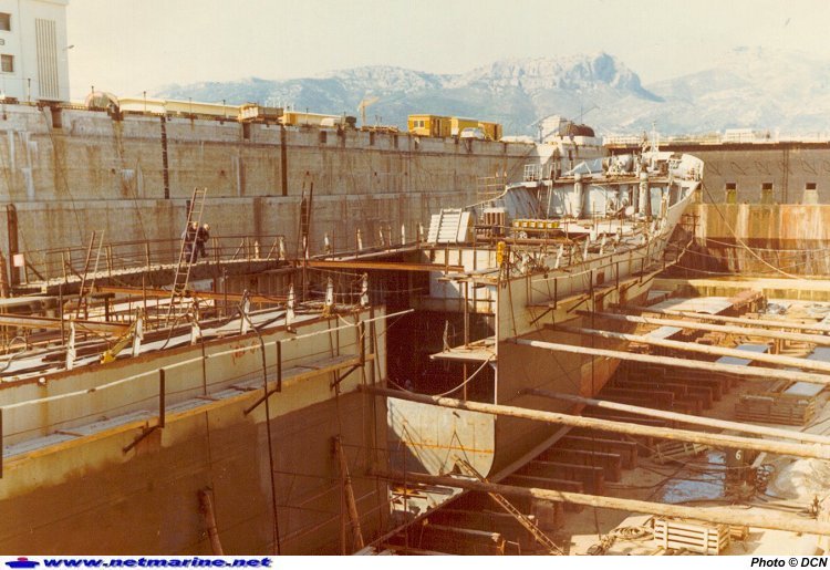 , au bassin à Toulon lors de sa jumboisation (août 1972).