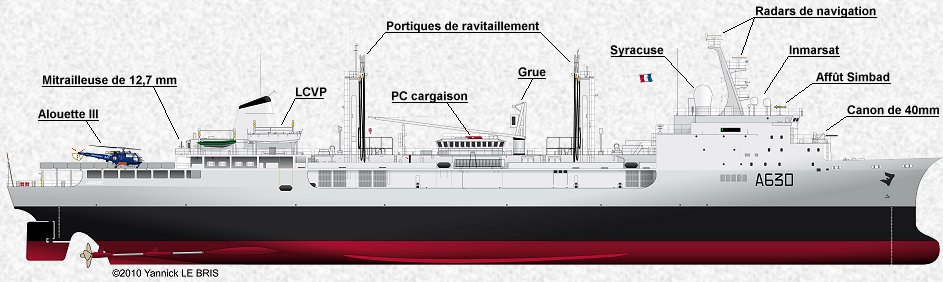 Le bâtiment peut ravitailler simultanément 3 bâtiments : 2 à couple