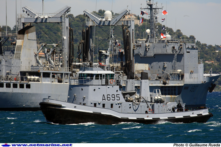 en rade de Toulon, devant de pétrolier-ravitailleur