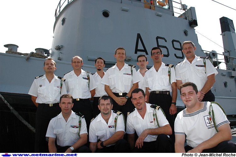 Autour de son commandant, le lieutenant de vaisseau Patrick Nouette, l'équipage du remorqueur côtier
