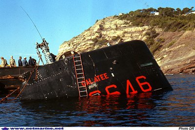 Le sous-marin Galatée échoué au pied