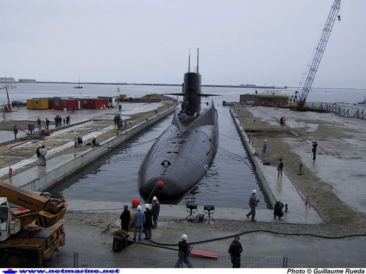 Le SNLE Le Redoutable arrive à la cité de la mer à Cherbourg (4 juillet 2000).