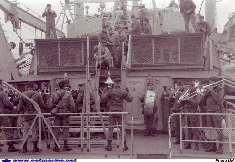 arrive à Ajaccio, en musique avec le 2e Régiment Etranger de Parachutistes (1974 - Photo Jean-Claude Denier).