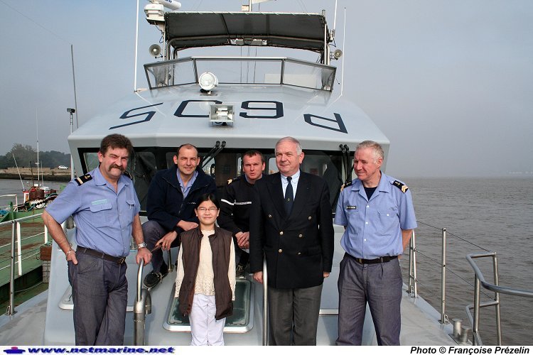 Le CV (R) Bernard Prézelin, célèbre auteur de « Flottes de Combat », en compagnie de l'équipage de la