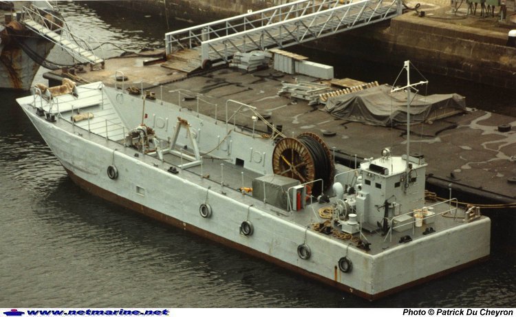 à quai en Penfeld. On remarque l'antenne linéaire lovée sur le touret