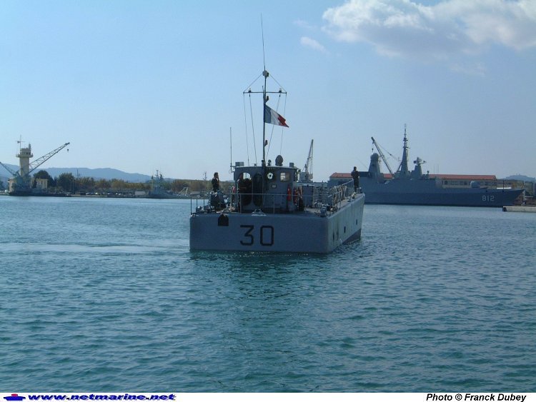 en manoeuvre dans l'arsenal de Toulon. En arrière-plan, on aperçoit la frégate Saoudienne