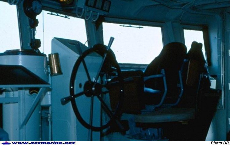. A droite du siège du commandant, on aperçoit la traditionnelle console du radar de navigation DECCA 1226 (1979 - photo Gilles Noël).