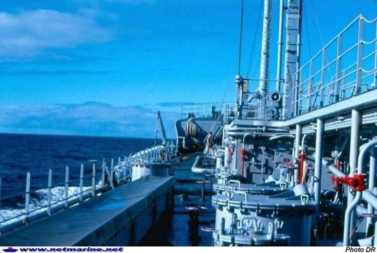 Vue côté babord du pont pétrolier de l'