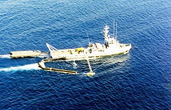 Récupération par chalut : 2 bâtiments sont alors nécessaires,