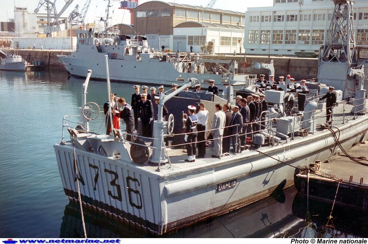 Dernier envoi des couleurs à bord du navire de surveillance radiologique, ex-dragueur de mines
