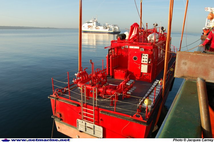 Douffine sous les sangles du Jumbo Spirit le jour de sa livraison à Brest (8 avril 2010).