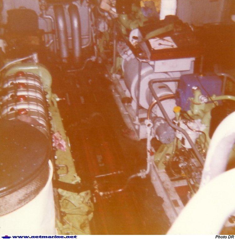 : à gauche moteur de propulsion GMC type 8.268 A et à droite groupe électrogène Hispano Suiza (1976 - photo Jean-Marc Lebas).
