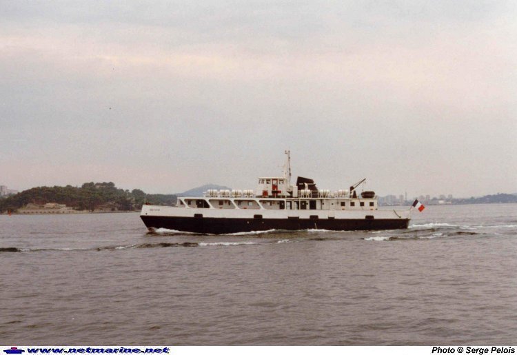 devant le fort de l'Aiguillette lors de sa rotation vers Saint-Mandrier. Les imposants radeaux de sauvetage ont été remplacés par embarcations à gonflage automatique type"Bombard" (05 août 1997).