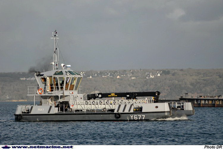 en transit vers le port de commerce de Brest avec une coupée en pontée (photo Arnaud Simon - 28 mars 2009).