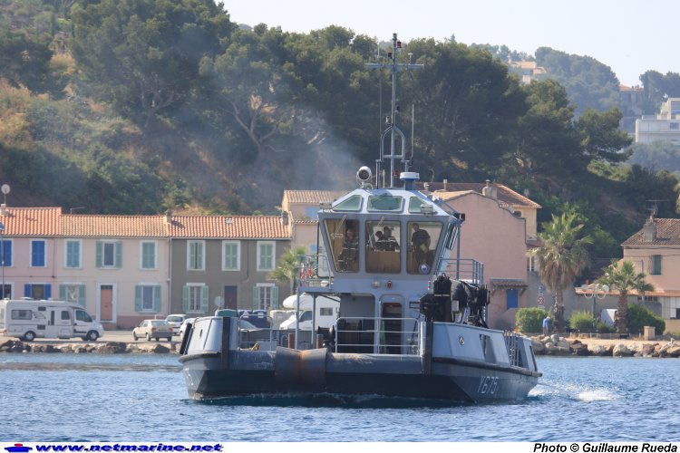 manoeuvrant à faible allure devant Saint-Mandrier-sur-Mer, en rade de Toulon (17 juin 2009).