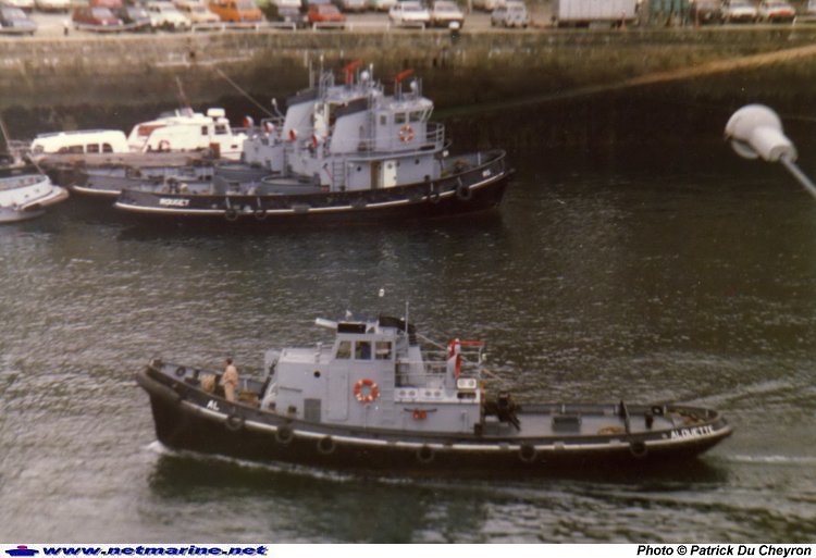 évoluant à petite vitesse en Penfeld. En arrière-plan, les remorqueurs