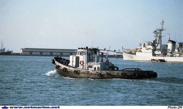 en mouvement dans le port de Djibouti. En arrière-plan, l'aviso-escorteur