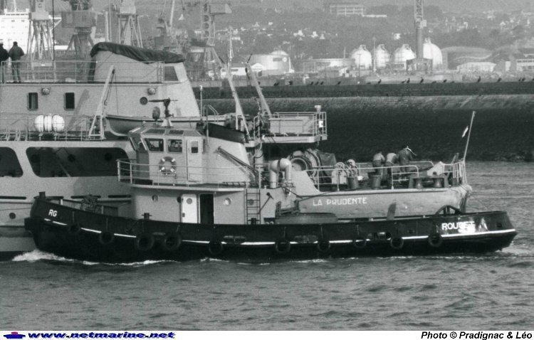 faisant appel à toute la puissance de sa propulsion pour déplacer la gabare de port