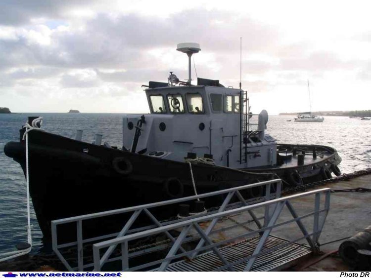 Le remorqueur de 250 CV Martinet amarré à Dzaoudzi, implantation de l'ELEBN (ELEment de Base Navale) Mayotte. Dernier représentant d'une série de 32 unités construites dans les années 60 et 70, il est en Océan Indien depuis le 4 juillet 1997. Désarmé en 2007, il est remplacé par le RP10 Morse en provenance de Cherbourg (13 juillet 2006 - photo Claude Martin).[Sommaire Net Marine] |