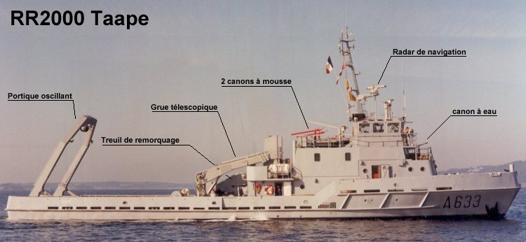 2 canons à mousse (situés derrière la passerelle), 1 canon à eau situé