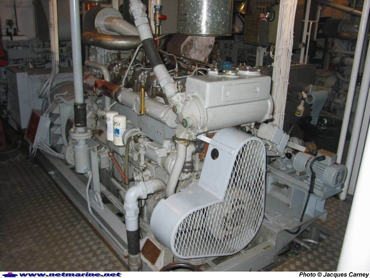 Compartiment machine de Telenn Mor. Le moteur de propulsion tribord Baudouin type 6P15-2SR (2004).