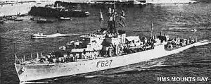 C'est le 11 septembre, que la frégate de la Royal Navy Mounts Bay appareilla de Pusan pour rejoindre en mer le gros des forces de débarquement au large de la côte Ouest de Kyushu. Notre rôle était d'assumer une mission d'escorte et de protection en compagnie d'autres frégates: HMS Whitesand Bay (F 633), Morecambe Bay (F 624) ainsi que des Néo-Zélandais HMNZS Tutira (F517) et Pukaki ( F424). Nous rejoignîmes plus tard le Français FMS La Grandière puis les frégates américaines USS Bayonne, USS Newport et USS Evansville. Heureusement la mer et le vent s'étaient calmés, permettant une navigation plus confortable dans la traversée de la Mer Jaune vers notre ultime destination, le Chenal du "Poisson Volant" conduisant à Inchon. Dès le 13, la cadence et l'intensité des bombardments navals et aériens s'accrut fortement. Vînt s'y ajouter les croiseurs légers HMS Jamaïca et Kenya qui eurent la tâche de détruire cinq batteries côtières de 76 mm sur l'île de Wolmi Do, dominant l'entrée du port d'Inchon. Le CV J.H. Unwin RN, DSC, commandant du Mounts Bay, reçut la responsabilité de constituer un écran extérieur de protection d'environ 50 nautiques de long sur 40 de large vers le Sud des passes d'Inchon. La mission était d'empêcher toute pénétration ennemie vers la zone de débarquement tant par bateaux, que par embarcations suicides, nageurs de combat, mines flottantes, et de prévenir tout mouvement de l'ennemi entre les îles et le continent, ainsi que d'assurer le sauvetage des équipages d'avions abattus. Sous le commandement du CV Unwin, on retrouva le Whitesand Bay et le Morecambe Bay, avec le RNZS Tutira (ex Loch Morlich), le RNZS Pukaki (ex Loch Achanal) tous deux frégates de la classe "Loch" armées d'un seul canon de 4 pouces, de 20mm et 40mm AA et de deux systèmes squid AS. La participation US dans cet ensemble était assurée par les USS Bayonne, Newport et Evansville qui étaient des corvettes de la classe "Ashville" (classe Lend Lease River), disposant chacune d'un armement léger de trois canons de 3 pouces et de dix 20mm AA ainsi que de grenades sous-marines. Le dernier maillon (last but not least) de cet écran était le (French Motor Ship) FMS La Grandière, un aviso colonial de quelque 2.600 tonnes (pc) armé de trois canons de 5,5 pouces (138mm) en tourelle simple ainsi que de onze 20mm oerlikon et quatre 40mm bofors AA, de grenades sousmarines (66). (DonGiles avait écrit: le Mounts Bay et le La Grandière avaient déjà assurés côte à côte de nombreuses missions d'escorte et de protection de convois et, au repos au port, les équipages n'avaient pas manqué de cimenter ces bonnes relations de travail par des échanges de rhum, de vin, de cigarettes gauloises et de bonne hospitalité mutuelle. Le mélange de vin rouge avec le rhum produisait un concentré explosif d'au moins 200% d'indice d'octane ressemblant plutot à du carburant d'aviation qu'à une boisson à boire entre amis, mais cependant tellement appréciée de chacun. Texte non édité ...) Pendant le débarquement du 15 septembre, les équipages des bâtiments du screening group étaient à leurs postes de combats, attentifs à toute réaction des troupes Nord-Coréennes. Le lendemain à 20h 30, notre radar de veille repèra un bateau qui ne répondit pas à nos signaux lumineux. Notre tourelle "B" ouvrit le feu avec six rockets éclairantes de 2 pouces. Nous pûmes ainsi identifier un dragueur ROK (Republic Of Korea) en train de rejoindre la flottille dont nous avions la protection et opérant dans les passes d'Inchon... Le 18, le Mounts Bay et le La Grandière se mirent à tirer au 40mm bofors sur des mines flottantes, en détruisant quelques unes. Les Coréens du Nord larguaient dans les courants des mines de contact fabriquées par les soviétiques en utilisant pour celà des jonques et des sampans. Le 25 septembre, comme les forces des Nations Unies étaient sur le point d'investir Séoul et que la jonction avec les éléments de la 8ème Armée venant du Sud était imminente, les priorités navales furent ré-étudiées et le dispositif de l'écran de protection réaffecté. Le Mounts Bay vînt s'amarrer à couple de l'USS Winston (AKA94) dans le port d'Inchon pour avitaillement. La réorganisation tenait compte du fait qu'il était devenu hautement nécessaire de faire face au danger créé en mer, tant par les mines mouillées que par les mines flottantes. Cinquante quatre mines avaient été vues rien que par notre groupe. Deux destroyers US, l'USS Mansfield (DD 728) et l'USS Brush (DD 745) ainsi que deux dragueurs ROK de la classe Albatross devaient sauter sur des mines et être plus ou moins gravement endommagés. L'USS Magpie (AMS25) fut coulé par mine, au large de Pohang. En dehors des dommages causés aux navires, il y eut des victimes dans les équipages et celà était une menace permanente pour tous les Marins. À bord du La Grandière Nous pûmes voir un bâtiment US qui avait sauté sur une mine et constater de visu ce qu'une mine peut causer comme dommages à un bateau. C'était probablement l'USS Brush (DD745). La proue était détruite. Un de nos marins se rappelle parfaitement de ce qu'il a vu: "...tout l'avant y compris la première tourelle avait disparu, comme coupé à la scie. Cependant le bateau avançait à petite vitesse par ses propres moyens. La poupe se dressait en l'air et les hélices étaient quasiment hors de l'eau..." Un autre ajoute: "Il y avait de nombreuses victimes, peut-être une cinquantaine... et je crois qu'il y avait au moins cinq marins tués... C'était tout à fait possible, car comme dans notre Marine, les postes d'équipage sont placés à l'avant des bateaux, non loin des soutes... Dieu ait leur âme!" À bord du Mounts Bay Les mêmes bâtiments qui avaient été affectés à des missions de protection dans l'écran au large d'Inchon se retrouvèrent presque tous dans le Groupe de dragage de mines TG 95.6 sous le commandem