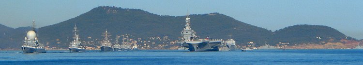 ![]() Les bâtiments passent dans la ligne de file devant le Charles de Gaulle (photo Antoine Morcello). |