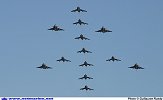 - Lors du défilé aérien, le E2C Hawkeye prévu, a été remplacé par un neuvième Super-Etendard (visible sur la photo). En effet, à l'issue de la répétition du 12 août, le E2C a pris un oiseau lors de son arrivée sur le terrain de Nîmes Garons, et, en attente des inspections complémentaires de turbopropulseur et d'hélice, il a dû annuler sa participation à ce défilé. Au bilan rien de grave pour le moteur et une petite retouche hélice !
