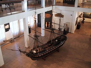 LE FARON: Montagne fétiche des toulonnais culminant à 584 m, le Faron, qui offre un panorama extraordinaire, est aussi une position stratégique dont le sommet est couronné de fortifications. L'accès se fait par une route panoramique ou le téléphérique, l'un des rares au monde à se situer en bord de mer. La superbe corniche Marius Escartefigues offre une vue magnifique sur la ville et la rade. Au sommet se visitent la tour Beaumont, musée Mémorial du Débarquement allié en Provence, et le zoo, centre de reproduction des félins le plus important d'Europe. LE MUSÉE DE LA MARINE: On y entre par une porte monumentale du XVIIIème siècle, qui était jadis la porte d'entrée de l'arsenal. A l'entrée, le visiteur pénètre de plein pied sur le quai de l'artillerie et du vieil arsenal, reproduit sur fond de ciel doré à la feuille, tel que Joseph Vernet l'a peint au XVIIIème siècle. De nombreuses maquettes, peintures, cartes, estampent illustrent le port, l'arsenal et la glorieuse histoire maritime de Toulon, des galères au bâtiments de combat modernes.