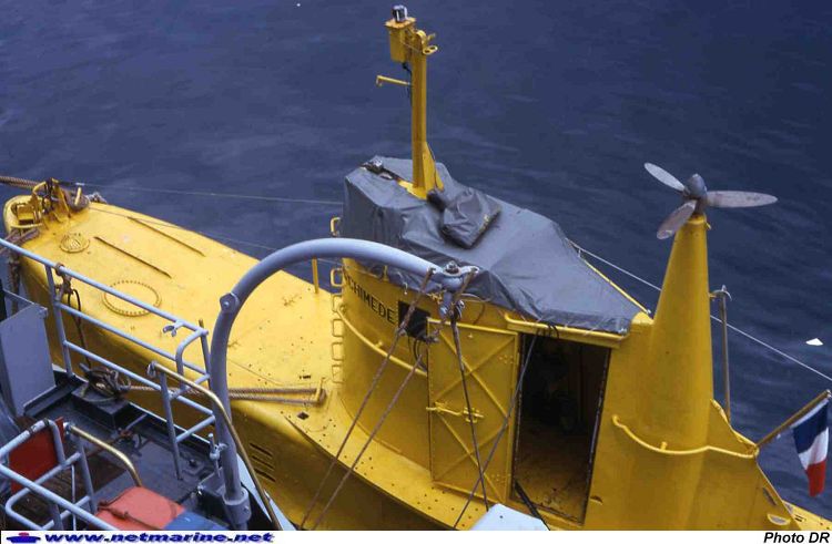 Le Bathyscaphe Archimède à couple de son bâtiment de soutien Marcel Le Bihan (date ? collection Michel Gebus)