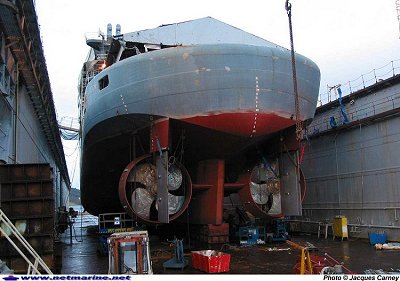 Propulseurs d'étrave : 2 propulseurs transversaux avant (2 x 883 kW) + 2 propulseurs arrière (2 x 515 kW)