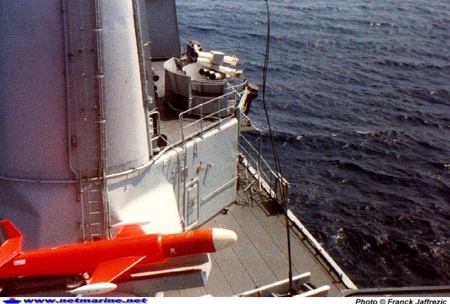 se présente sur sa rampe avant un tir. Ce système d'armes a été débarqué par la suite (17 mars 1987).