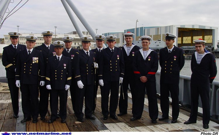 à Cherbourg, autour de son nouveau commandant, le major Loic Cariou (17 juin 2004 - photo Jean Christophe TISON).